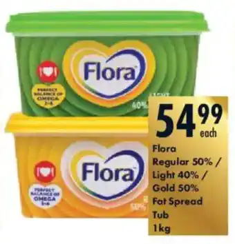 This special is available in various stores, view all products to get the cheapest Flora Regular 50%/ Light 40%/ Gold 50% Fat Spread Tub. If you'd like to find out whether this product has a bigger discount in another store, check the category 'Grocery stores'. You may also find these specials interesting: Flora Light 40%/ Regular 50% Fat Spread, Flora Light 40%/ Regular 50% Fat Spread ( & Flora 40% Light/50% Regular Fat Spread.