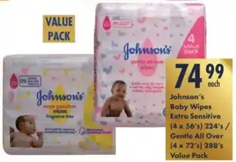 Johnson's Baby Wipes Extra Sensitive/ Gentle All Over Value Pack promotion at President Hyper