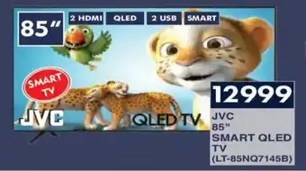 This special is available in various stores, view all products to get the cheapest JVC 85" Smart QLED TV. If you'd like to find out whether this product has a bigger discount in another store, check the category 'Grocery stores'. You may also find these specials interesting: JVC 75" Smart QLED TV, JVC 32" Smart QLED TV & JVC 60" Smart QLED TV.