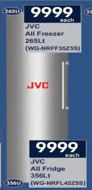 This special is available in various stores, view all products to get the cheapest JVC All Fridge. If you'd like to find out whether this product has a bigger discount in another store, check the category 'Grocery stores'. You may also find these specials interesting: JVC All Freezer, JVC Dual Speakers & JVC 32 (81cm) QLED Smart TV.