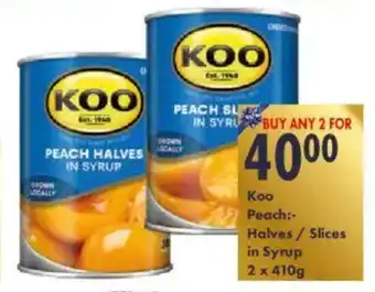 Koo Peach Halves/ Slices in Syrup 2 x 410 g