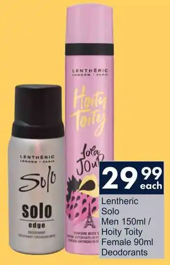 Lentheric Solo Men/ Hoity Toity Female Deodorants promotion at President Hyper