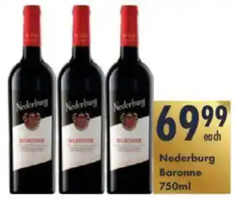 This special is available in various stores, view all products to get the cheapest Nederburg Baronne. If you'd like to find out whether this product has a bigger discount in another store, check the category 'Grocery stores'. You may also find these specials interesting: Nederburg Double Barrel Reserve 750ml, Nederburg Double Barrel Reserve & Nederburg Cabernet Sauvignon Red Wine.