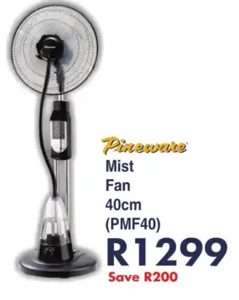 President Hyper offers a wide collection of products, besides the Pineware Mist Fan. Keep an eye on the weekly President Hyper catalogue to find the best specials and promotions. Besides Pineware Mist Fan, you can also find the following offers: Alva 40cm Mist Fan ACS305, GOLDAIR 40cm Pedestal Mist Fan & Logik 40cm Mist Fan With Remote 850028504.