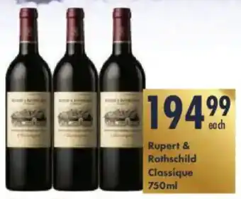 This special is available in various stores, view all products to get the cheapest Rupert & Rothschild Classique. If you'd like to find out whether this product has a bigger discount in another store, check the category 'Grocery stores'. You may also find these specials interesting: Rupert & Rothschild Classique 750ml, Rupert & Rothschild Classique Red Wine & RUPERT & ROTHSCHILD Classique 3-Bottle Vintage Collection.