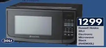 This special is available in various stores, view all products to get the cheapest Russell Hobbs Electronic Microwave Black. If you'd like to find out whether this product has a bigger discount in another store, check the category 'Grocery stores'. You may also find these specials interesting: Russell Hobbs Electronic Microwave, Russell Hobbs 30L Electronic Microwave Oven (850002488) & Russell Hobbs 30L Electronic Microwave RHEM31L.