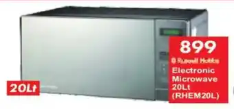 This special is available in various stores, view all products to get the cheapest Russell Hobbs Electronic Microwave. If you'd like to find out whether this product has a bigger discount in another store, check the category 'Grocery stores'. You may also find these specials interesting: Russell Hobbs Electronic Microwave Black, Russell Hobbs Electronic Microwave Mirror RHEM45L & Russell Hobbs 30L Electronic Microwave Oven (850002488).