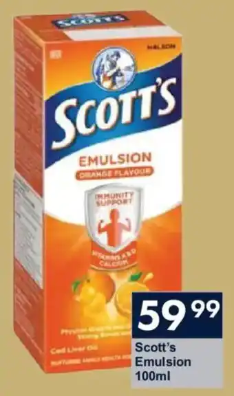 This special is available in various stores, view all products to get the cheapest Scott's Emulsion. If you'd like to find out whether this product has a bigger discount in another store, check the category 'Grocery stores'. You may also find these specials interesting: Scott's Emulsion Vitamin Syrup Asstd., Scott's Orange Flavoured Cod Liver Oil Emulsion & offer 3.