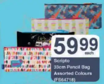 This special is available in various stores, view all products to get the cheapest Scripto Pencil Bag Assorted Colours. If you'd like to find out whether this product has a bigger discount in another store, check the category 'Grocery stores'. You may also find these specials interesting: Scripto Pencil Bag, Scripto Pencil Bag & Scripto Pencil Bag.