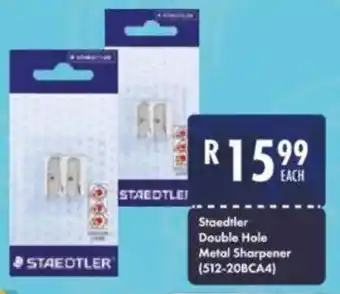 This special is available in various stores, view all products to get the cheapest Staedtler Double Hole Metal Sharpener. If you'd like to find out whether this product has a bigger discount in another store, check the category 'Grocery stores'. You may also find these specials interesting: Staedtler Sharpener Double Hole Metal, Staedtler Metal Double Hole Sharpener (144557) & Staedtler 1-Hole Metal Sharpener.
