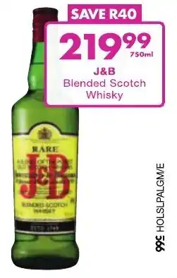This special is available in various stores, view all products to get the cheapest J&B Blended Scotch Whisky. If you'd like to find out whether this product has a bigger discount in another store, check the category 'Liquor stores'. You may also find these specials interesting: J&B Blended Scotch Whisky, J&B BLENDED SCOTCH WHISKY 750ml & J&B blended scotch whisky.