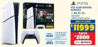 This special is available in various stores, view all products to get the cheapest PS5 Slim Digital Bundle + EA FC 26. If you'd like to find out whether this product has a bigger discount in another store, check the category 'Home furniture'. You may also find these specials interesting: PS5 Slim Digital + Ea Fc 26, PS5 Slim Digital + EA FC 26 + Cable Guy Mini & PS5 Slim Digital + Fortnite Bundle.