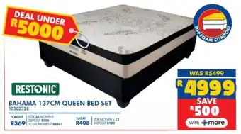 The price of Restonic bahama 137cm queen bed set can be found at the top of the page, together with the dates during which the special is available. You can also check the price in the current Russells catalogue or on the Russells website. Promotional offers assure you of buying Russells products at the lowest price.