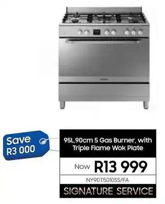 Samsung 90cm 5 Gas Burner, with Triple Flame Wok Plate promotion at Samsung