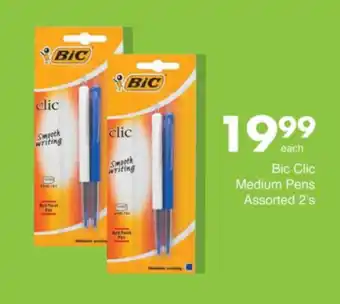 This special is available in various stores, view all products to get the cheapest Bic Clic Medium Pens Assorted. If you'd like to find out whether this product has a bigger discount in another store, check the category 'Grocery stores'. You may also find these specials interesting: Bic Clic Medium Pens Assorted, Bic Clic Ballpoint Pens Fine/Medium Pack Of 2 Assorted Colours-Each & BIC Clic Pens Medium.