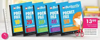 This special is available in various stores, view all products to get the cheapest Butterfly Pocket File 10 Pocket. If you'd like to find out whether this product has a bigger discount in another store, check the category 'Grocery stores'. You may also find these specials interesting: Butterfly Pocket File, Butterfly A4 20-Pocket File & Butterfly A4 50-Pocket File.