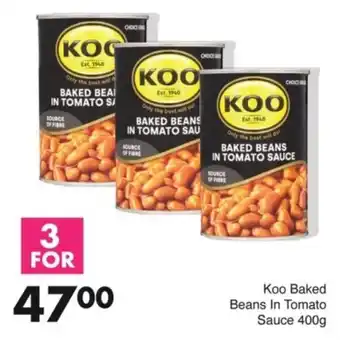 This special is available in various stores, view all products to get the cheapest Koo Baked Beans In Tomato Sauce. If you'd like to find out whether this product has a bigger discount in another store, check the category 'Grocery stores'. You may also find these specials interesting: Koo Baked Beans in Tomato Sauce, Koo Baked Beans In Tomato Sauce & KOO Baked Beans in Tomato Sauce 2x400g.