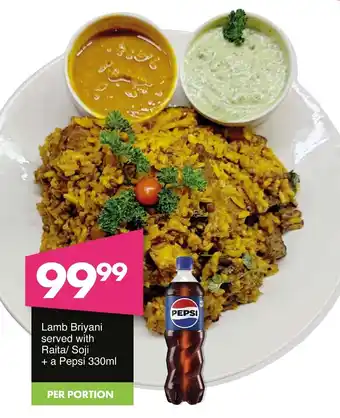 Lamb Briyani served with Raita/ Soji + a Pepsi