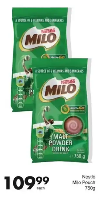 This special is available in various stores, view all products to get the cheapest Nestlé Milo Pouch. If you'd like to find out whether this product has a bigger discount in another store, check the category 'Grocery stores'. You may also find these specials interesting: Nestle Milo Pouch, Nestle Milo Pouch 750g & Nestlé Milo.