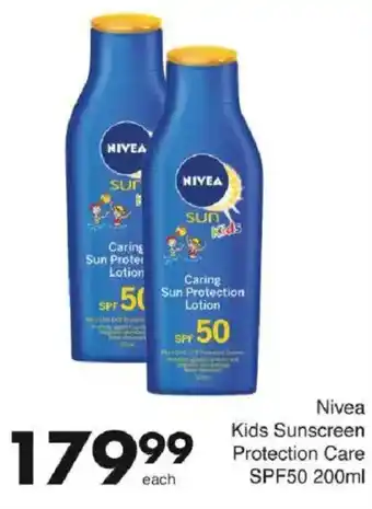 Nivea Kids Sunscreen Protection Care SPF50 promotion at Save Hyper