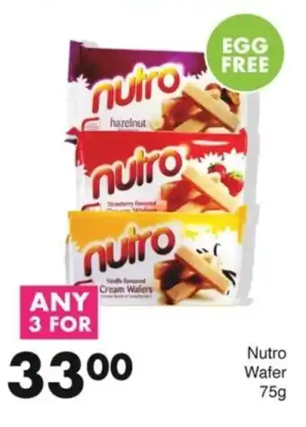 This special is available in various stores, view all products to get the cheapest Nutro Wafer. If you'd like to find out whether this product has a bigger discount in another store, check the category 'Grocery stores'. You may also find these specials interesting: Nutro Creams, Nutro Special Crackers & Kinder Happy Hippo Cocoa Wafer.
