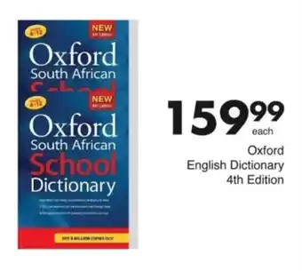 This special is available in various stores, view all products to get the cheapest Oxford English Dictionary 4th Edition. If you'd like to find out whether this product has a bigger discount in another store, check the category 'Grocery stores'. You may also find these specials interesting: Oxford English Dictionary 4th Edition, Oxford English-Afrikaans 2nd Edition or English-isiZulu Dictionary & Oxford Dictionary English/ Afrikaans.