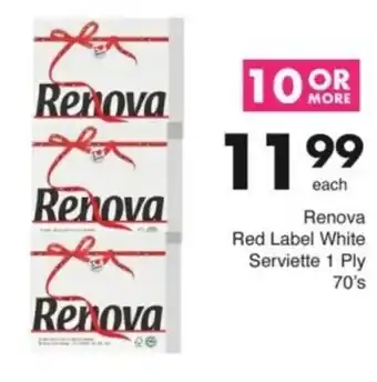 Renova Red Label White Serviette 1 Ply Offer at Save Hyper