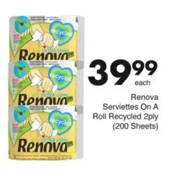 Renova Serviettes On A Roll Recycled 2ply promotion at Save Hyper