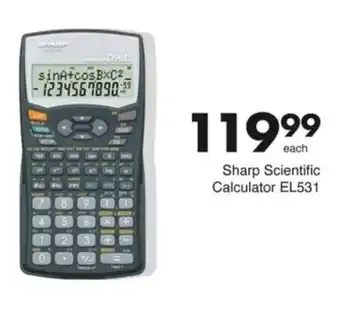 This special is available in various stores, view all products to get the cheapest Sharp Scientific Calculator EL531. If you'd like to find out whether this product has a bigger discount in another store, check the category 'Grocery stores'. You may also find these specials interesting: SHARP EL531WHB Scientific Calculator, SHARP EL531 SCIENTIFIC CALCULATOR & SHARP EL-531WHB Scientific Calculator.
