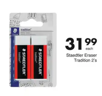 Save Hyper offers a wide collection of products, besides the Staedtler Eraser Tradition. Keep an eye on the weekly Save Hyper catalogue to find the best specials and promotions. Besides Staedtler Eraser Tradition, you can also find the following offers: Staedtler Eraser Tradition, Staedtler Tradition PVC Free Eraser & Staedtler Tradition Eraser Large-Each.