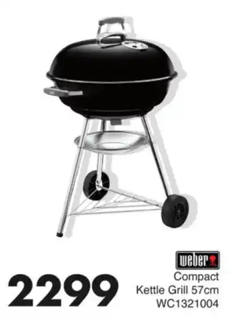 This special is available in various stores, view all products to get the cheapest Weber Compact Kettle Grill. If you'd like to find out whether this product has a bigger discount in another store, check the category 'Grocery stores'. You may also find these specials interesting: Weber 57cm Compact Kettle Grill Black and Etosha Triquettes 5kg, Weber Compact Kettle Braai & Weber 57cm Compact Kettle Braai.
