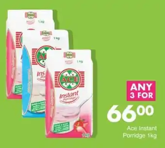 This special is available in various stores, view all products to get the cheapest Ace Instant Porridge. If you'd like to find out whether this product has a bigger discount in another store, check the category 'Grocery stores'. You may also find these specials interesting: Ace Instant Porridge, Ace Instant Porridge Assorted & ACE Porridge Assorted 1kg.