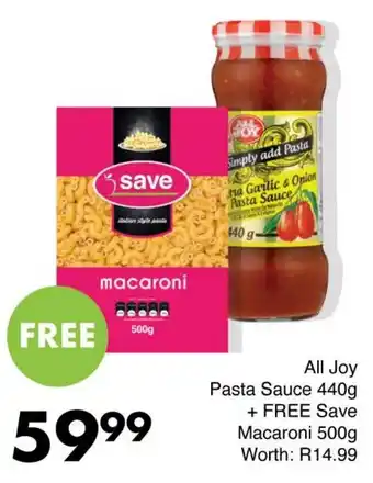 Save offers a wide collection of products, besides the All Joy Pasta Sauce. Keep an eye on the weekly Save catalogue to find the best specials and promotions. Besides All Joy Pasta Sauce, you can also find the following offers: All Joy Tomato Sauce, All Joy BBQ Sauce & All Joy Tomato Sauce.