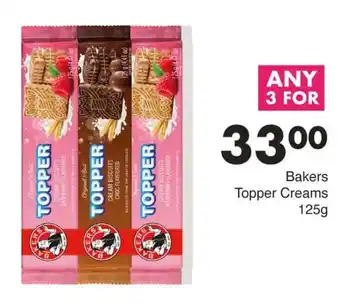 This special is available in various stores, view all products to get the cheapest Bakers Topper Creams. If you'd like to find out whether this product has a bigger discount in another store, check the category 'Grocery stores'. You may also find these specials interesting: Bakers Topper Biscuits, Bakers Romany Creams & BAKERS TOPPER BISCUITS.
