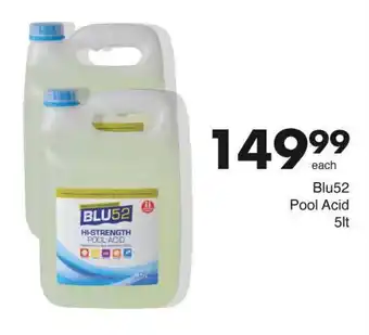 This special is available in various stores, view all products to get the cheapest Blu52 Pool Acid. If you'd like to find out whether this product has a bigger discount in another store, check the category 'Grocery stores'. You may also find these specials interesting: BLU52 Aquasphere Pool Cleaner Combi Pack, GNC Folic Acid & BLU52 Active Algaecide 550467-2Ltr.