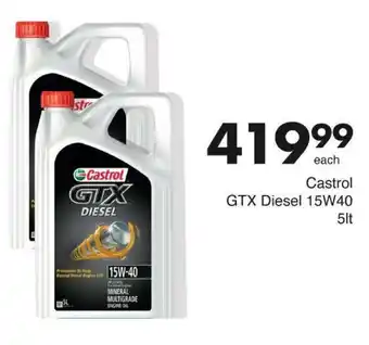 This special is available in various stores, view all products to get the cheapest Castrol GTX Diesel 15W40. If you'd like to find out whether this product has a bigger discount in another store, check the category 'Grocery stores'. You may also find these specials interesting: Castrol GTX Motor Oil 20W-50, offer 2 & offer 3.
