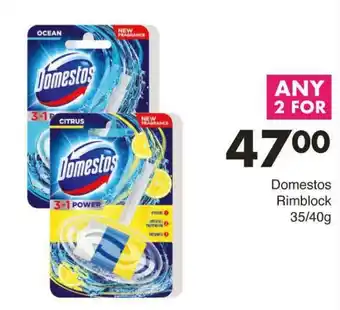 This special is available in various stores, view all products to get the cheapest Domestos Rimblock. If you'd like to find out whether this product has a bigger discount in another store, check the category 'Grocery stores'. You may also find these specials interesting: Domestos Rimblock, Domestos Bleach & Domestos Assorted.