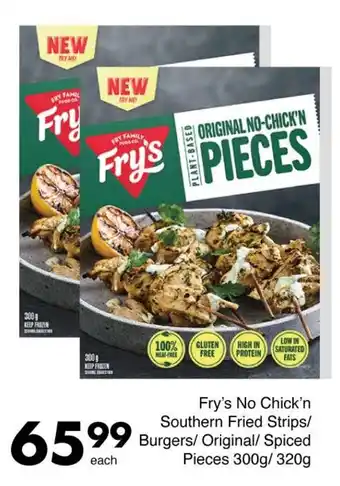 Save offers a wide collection of products, besides the Fry's No Chick'n Southern Fried Strips/ Burgers/ Original/ Spiced Pieces. Keep an eye on the weekly Save catalogue to find the best specials and promotions. Besides Fry's No Chick'n Southern Fried Strips/ Burgers/ Original/ Spiced Pieces, you can also find the following offers: Fry's Frozen Plant-Based Mince/ Strips/ No-Chick'n Pieces/ No Chick'n Burgers/ Sizzlers/ Smash Burgers, Fry's Frozen Plant-Based Chick'n/ Chunky Strips/ Chicken-Style Nuggets/ Burgers/ Schnitzels & Fry's Chicken Style Burgers.
