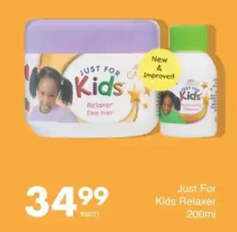 This special is available in various stores, view all products to get the cheapest Just For Kids Relaxer. If you'd like to find out whether this product has a bigger discount in another store, check the category 'Grocery stores'. You may also find these specials interesting: Just For Kids Relaxer 225ml Plus Shampoo 30ml, Just Sparkly & SOF N FREE Relaxer 125ml.