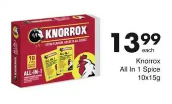 This special is available in various stores, view all products to get the cheapest Knorrox All In 1 Spice. If you'd like to find out whether this product has a bigger discount in another store, check the category 'Grocery stores'. You may also find these specials interesting: Knorrox Stock Cubes All Variants, NANDO'S Seasoning All-in-1 Spice & NANDO'S Seasoning All-in-1 Spice.