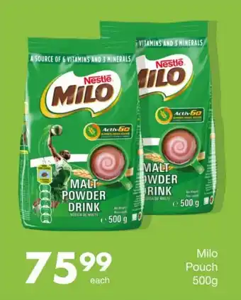 This special is available in various stores, view all products to get the cheapest Milo Pouch. If you'd like to find out whether this product has a bigger discount in another store, check the category 'Grocery stores'. You may also find these specials interesting: Nestle Milo Pouch 750g, Nestle Milo Pouch & Nestle Milo Pouch 750g.