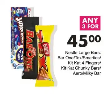 Nestlé Large Bars Bar One/Tex/ Smarties/ Kit Kat 4 Fingers/ Kit Kat Chunky Bars/ Aero/ Milky Bar offers and online specials, directly from Save
