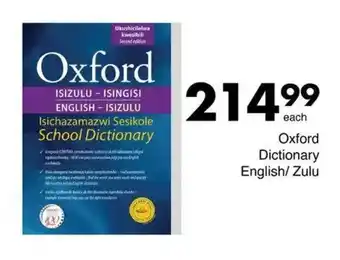 This special is available in various stores, view all products to get the cheapest Oxford Dictionary English/ Zulu. If you'd like to find out whether this product has a bigger discount in another store, check the category 'Grocery stores'. You may also find these specials interesting: Oxford English Dictionary 4th Edition, Oxford Dictionary English/ Afrikaans & Oxford English-Afrikaans Dictionary.