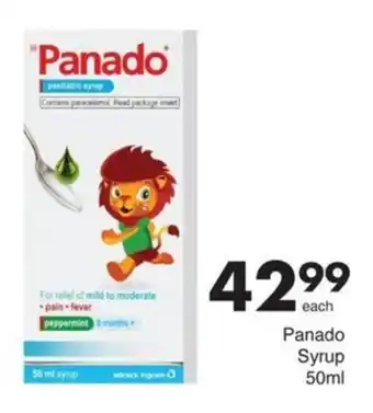 This special is available in various stores, view all products to get the cheapest Panado Syrup. If you'd like to find out whether this product has a bigger discount in another store, check the category 'Grocery stores'. You may also find these specials interesting: Panado Paediatric Syrup Asstd., 0Panado Paediatric Syrup-100ml & Panado Pain & Fever Tablets.
