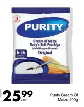 Save offers a wide collection of products, besides the Purity Cream Of Maize. Keep an eye on the weekly Save catalogue to find the best specials and promotions. Besides Purity Cream Of Maize, you can also find the following offers: Purity Cream of Maize Baby's Porridge Asstd., Purity Cream of Maize Baby Porridge Assorted & Purity Baby Aqueous Cream OR Baby Petroleum Jelly.