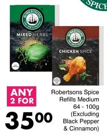This special is available in various stores, view all products to get the cheapest Robertsons Spice Refills Medium. If you'd like to find out whether this product has a bigger discount in another store, check the category 'Grocery stores'. You may also find these specials interesting: Robertsons Spice Refills, Hinds Spice Refills & Hinds Spice Refills.