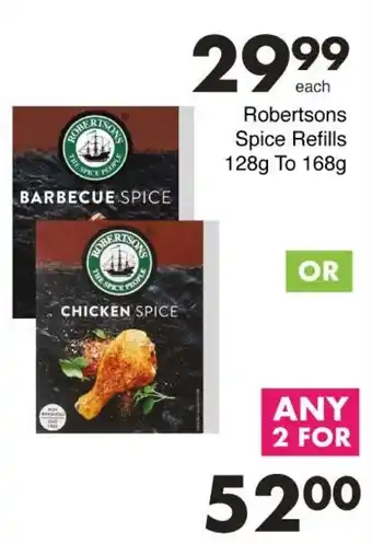Save offers a wide collection of products, besides the Robertsons Spice Refills. Keep an eye on the weekly Save catalogue to find the best specials and promotions. Besides Robertsons Spice Refills, you can also find the following offers: Robertsons Spice Refills Medium, ROBERTSONS Chicken, Steak & Chops or Barbeque Spice Refills & ROBERTSONS Chicken, Steak & Chops or Barbeque Spice Refills.