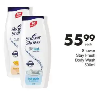 This special is available in various stores, view all products to get the cheapest Shower Stay Fresh Body Wash. If you'd like to find out whether this product has a bigger discount in another store, check the category 'Grocery stores'. You may also find these specials interesting: Shower to Shower Shower Gel/ Body Wash Creme, Protex Fresh Shower Gel/ Plus Moisture Lock Body Wash & Body solutions body wash.