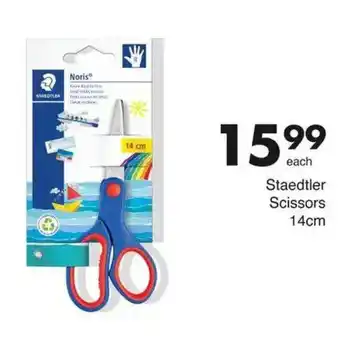 This special is available in various stores, view all products to get the cheapest Staedtler Scissors. If you'd like to find out whether this product has a bigger discount in another store, check the category 'Grocery stores'. You may also find these specials interesting: Staedtler Scissors 140mm (248665), Staedtler Scissors 170mm (248666) & Staedtler Scissors or Left-Handed Scissors.