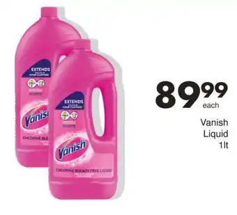 This special is available in various stores, view all products to get the cheapest Vanish Liquid. If you'd like to find out whether this product has a bigger discount in another store, check the category 'Grocery stores'. You may also find these specials interesting: Vanish Liquid Fabric Stain Remover, Vanish Stain Remover Liquid Asstd., Power O2 or Power O2 Crystal White, Regular Powder Pouch or Crystal Whites Powder Pouch & VANISH In-Wash Stain Remover.